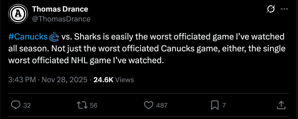 I Watched This Game: Canucks at Sharks, Nov 28, 2025